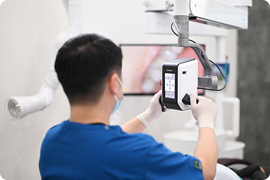 最新のデジタル機器を使用してお口の中の状態を説明し、しっかりとご自身で見て確認していただき、納得されてから治療を行います。
